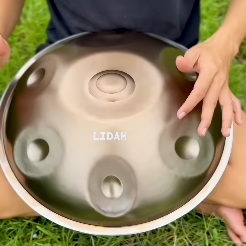 Mit einem Durchmesser von 43 cm liegt die Mini-Handpan bequem auf dem Schoß, ist leicht zu tragen und einfach zu spielen. Ihre handliche Größe macht sie zur idealen Begleiterin für Anfänger, Reisende oder Spieler mit kleinerer Statur – ganz ohne Kompromisse beim Klang.
